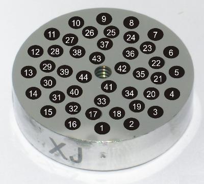All 44 items are mounted on one 25mm diameter, 6mm thick stainless steel